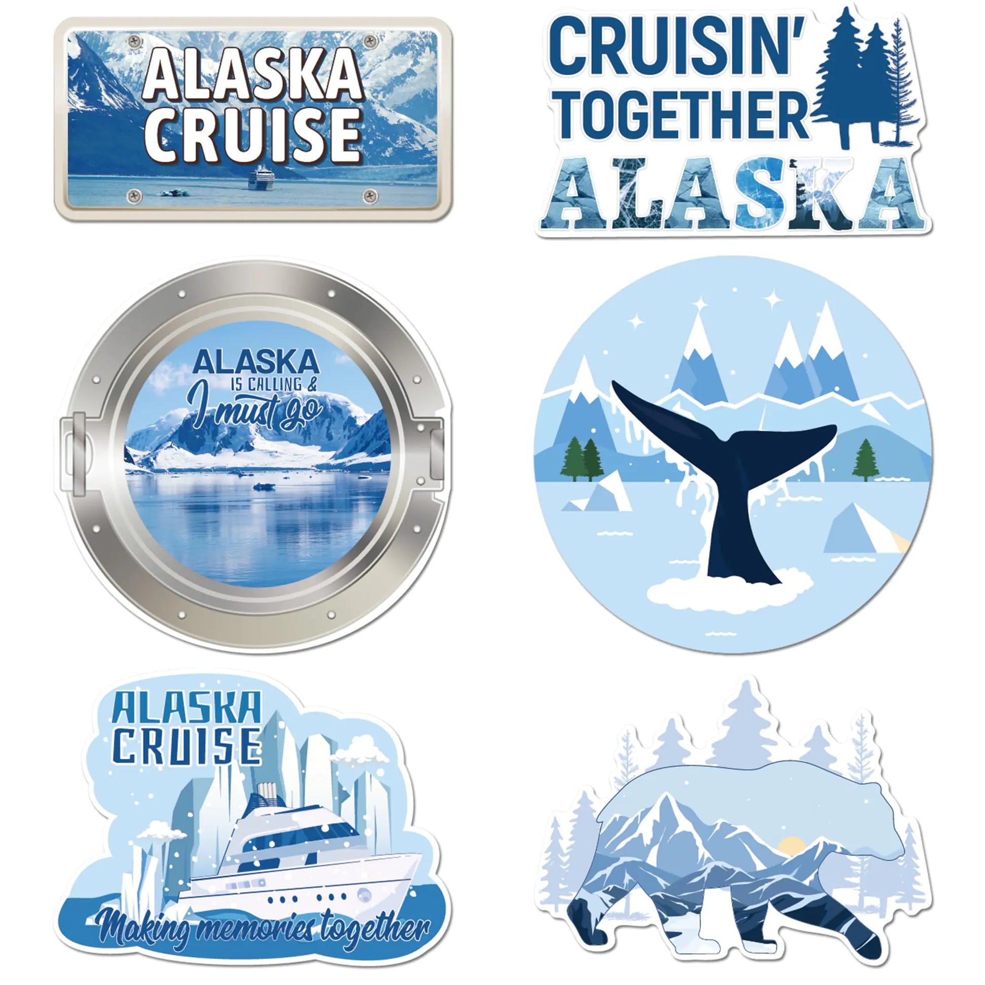 Alaska Cruise Door Decorations Magnetic - 6 Pcs Alaska Scenic Design Cruise Door Magnets Alaska Cruise Essentials Alaska Cruise Magnets for Ship Cabin Door Refrigerator Carnival Cruise Party